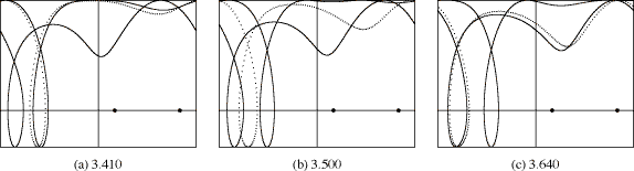 FIG. 5. Coexisting limit cycle attractors of the second kind (solid curves) separated by an unstable limit cycle of the second kind (broken curve) for