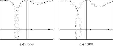 FIG. 6. Unstable limit cycles of the second kind by the Harmonic balance method, for
