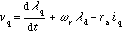 We use λ for flux linkages, v for line-to-neutral voltages, i for currents, r for winding resistances, X for reactances, ω for angular frequencies, and δ for angles against the infinite bus. The subscripts d and q denote the direct axis and the quadrature axis, respectively, subscript a denotes the armature (stator), subscript r denotes the rotor, subscript f denotes the filed, and subscripts kd and kq denote the direct axis and the quadrature axis, respectively, for the dampers.